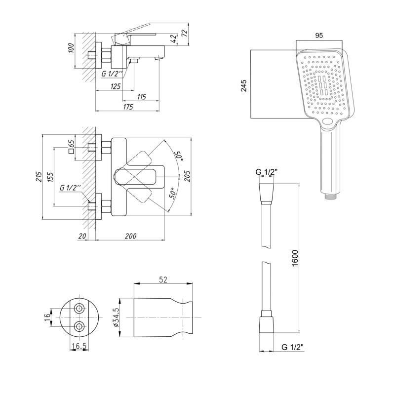 ОбладнанняСмеситель (QTNAM3025102DC), шланг (QTHADPVC160C), держатель (QTCRMA030), лейка (QTRUC125CRM45779)