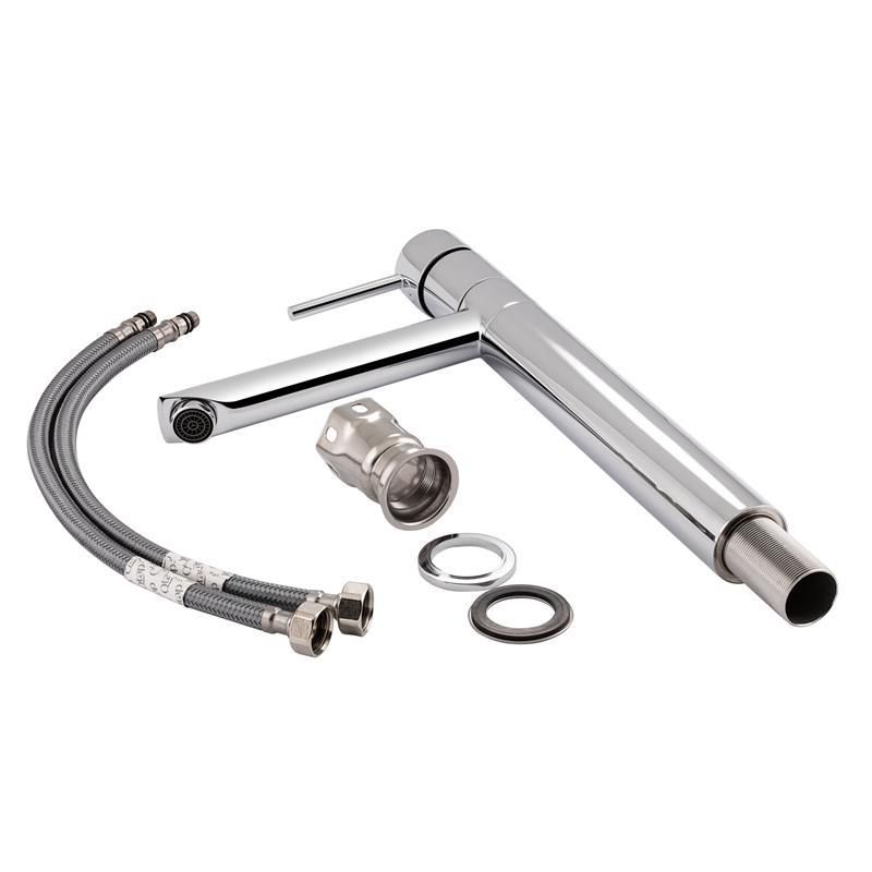 Змішувач для раковини Qtap Spring CRM 001XL виготовлений із високоякісної харчової латуні, яка не схильна до корозії, стійка до ударів і появи тріщин. Глянсове хромоване покриття не тільки підвищує довговічність змішувача, але й надає йому оригінального зовнішнього вигляду. Інтенсивність водного потоку та температура регулюються за допомогою переміщення важеля. Під'єднання води відбувається через гнучкі шланги з діаметром під'єднання 1/2". Змішувач зроблений у сучасному стилі.