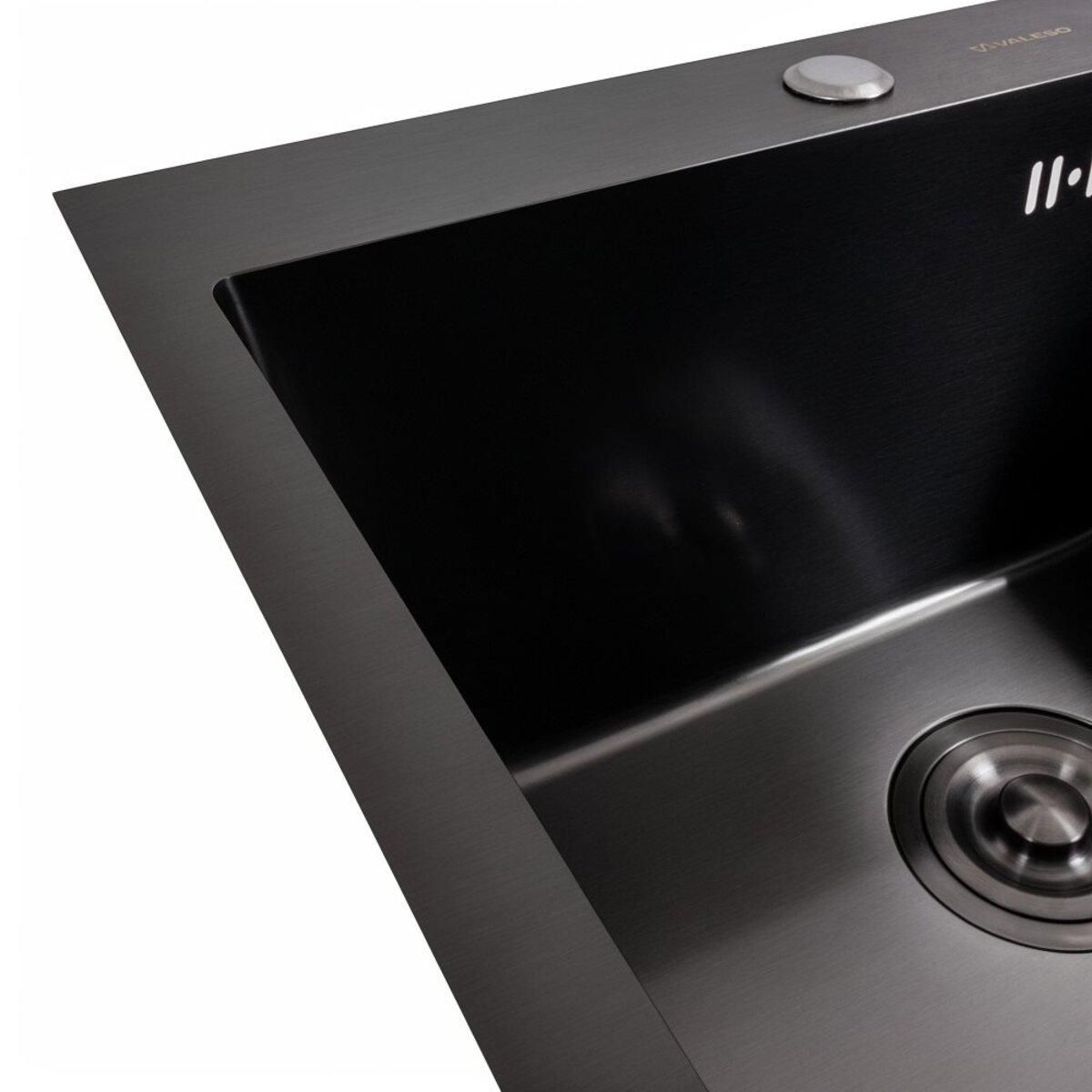 Мийка для кухні Valeso виготовлена з нержавіючої сталі SUS 201 з покриттям PVD , що гарантує її довговічність. Покриття мийки захищає її від подряпин потемніння та нальоту. Така кухонна мийка не боїться високих температур та впливу засобів побутової хімії.