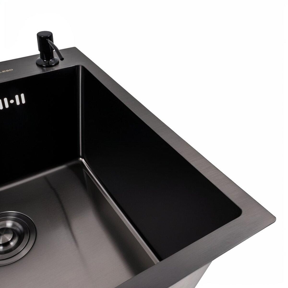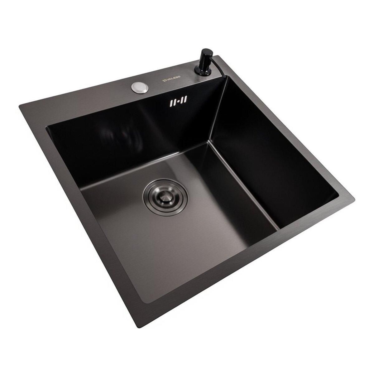 Кухонна мийка 50*50 PVD чорна Valeso Handmade (сифон круглий, 3,0/0,8)