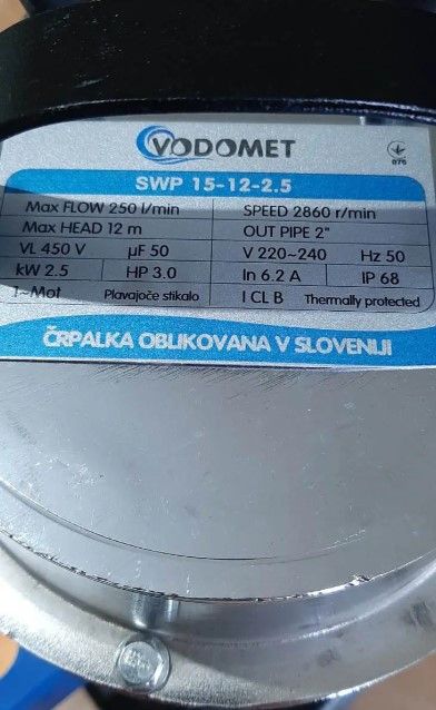Насос дренажно-фекальний Словенія VDMT SWP 15-12-2.5 H=12M, Q=15кбМ, P=2500Вт
