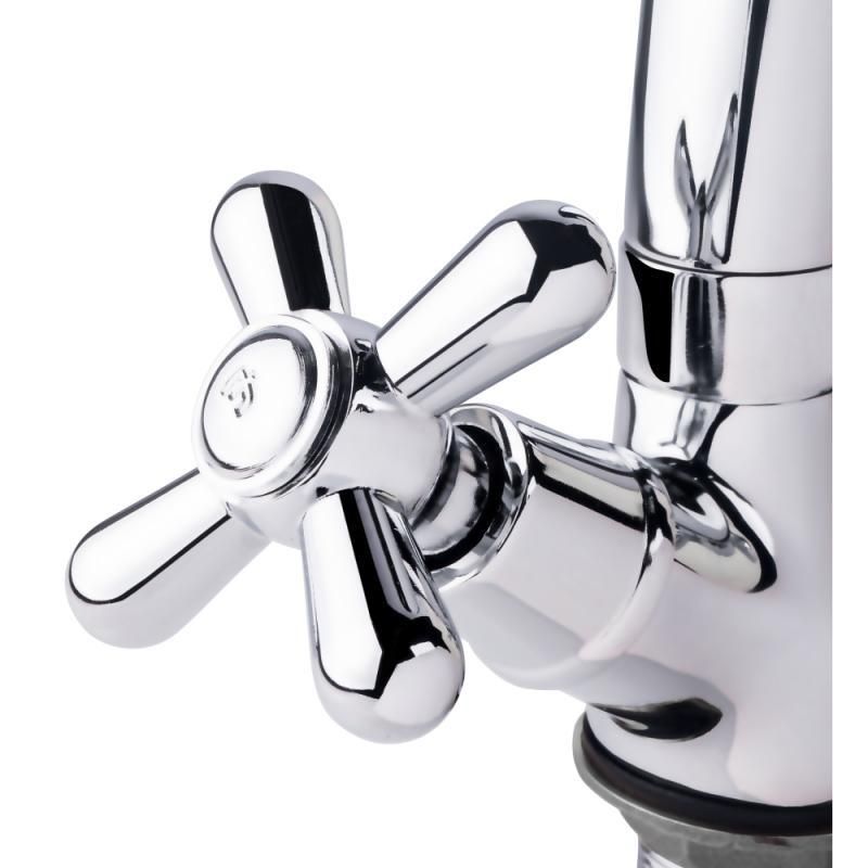 Змішувач для кухні Lidz (CRM) Dominox 15 272F-3 матиме естетичний вигляд та підійде під будь-який інтер'єр кімнати завдяки глянсовій блискучій поверхні. Він виготовлений із високоякісної латуні. Виріб монтується в отвір для змішувача на стільниці або на кухонній мийці врізним способом. Напір води та її температура регулюються поворотом двох зручних вентилів у потрібне положення.