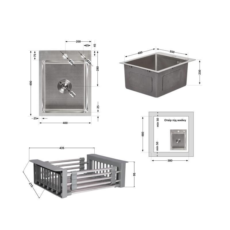 МатеріалНержавеющая сталь - мойка; латунь / пластик - дозатор; нержавеющая сталь / пластик - корзина
