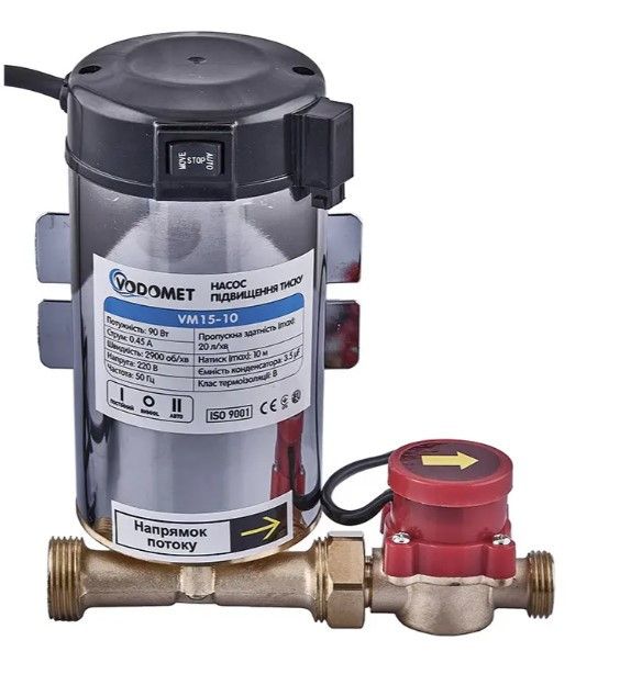 Насос для підвищення тиску VODOMET VM15-10 - призначений для систем водопроводу з низьким тиском. Застосовується як у квартирах багатоповерхових будинків, так і у приватних будинках. Найчастіше в централізованій системі водопроводу дуже низький тиск, для коректної роботи побутових приладів (газова колонка, пральна машина, посудомийна машина, фільтри тонкого очищення) за допомогою насоса для підвищення тиску можна легко усунути цю проблему! Також такі насоси застосовуються для подачі води під тиском з ємності для тих же побутових приладів. Завдяки автоматиці (реле протоки) насос повністю автономен, і не потребує постійного контролю. Основне завдання реле протоки відключати та вмикати насос під час відкриття та закриття потоку води.