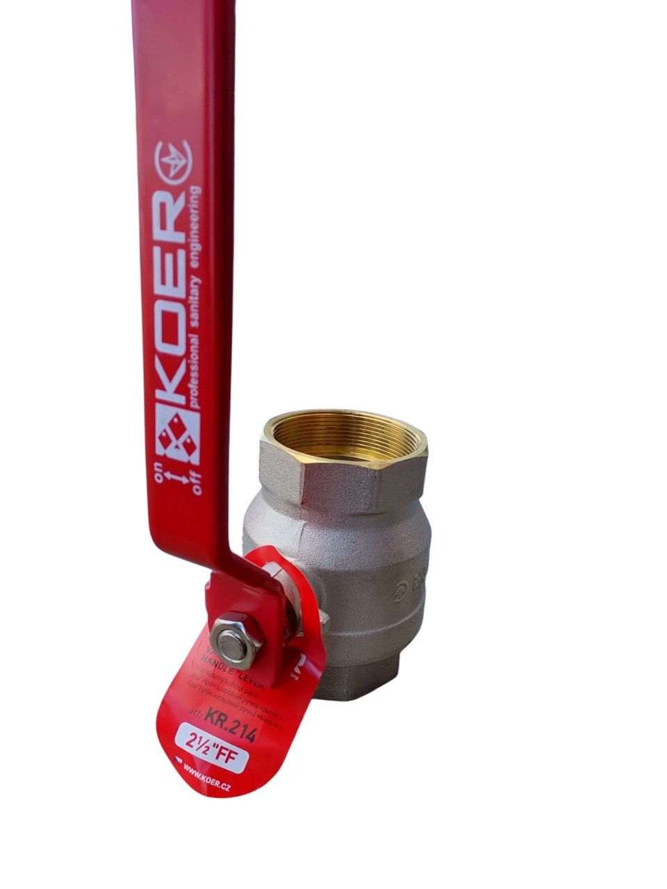 Кран кульовий Чохія KR. 214 2 1/2 FF гайка-гайка ручка довга обладнана латунним кульовим закривом, цей кульовий кран здатний витримати тиск 30 барів.