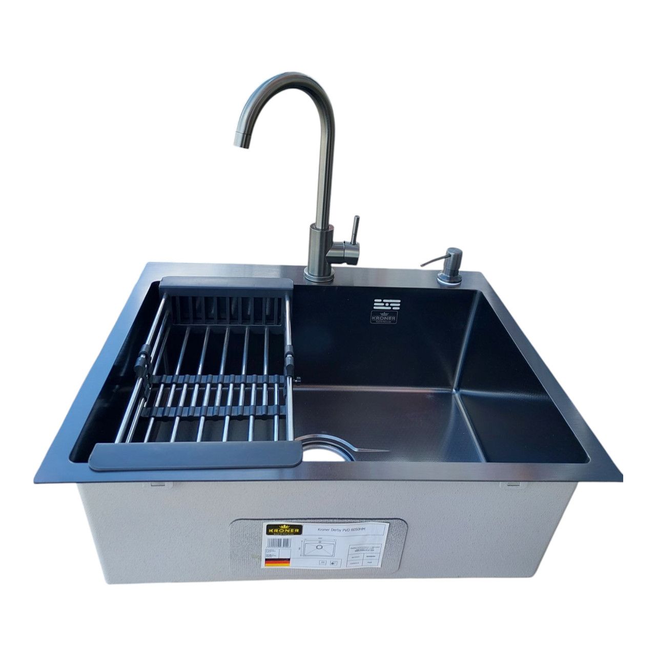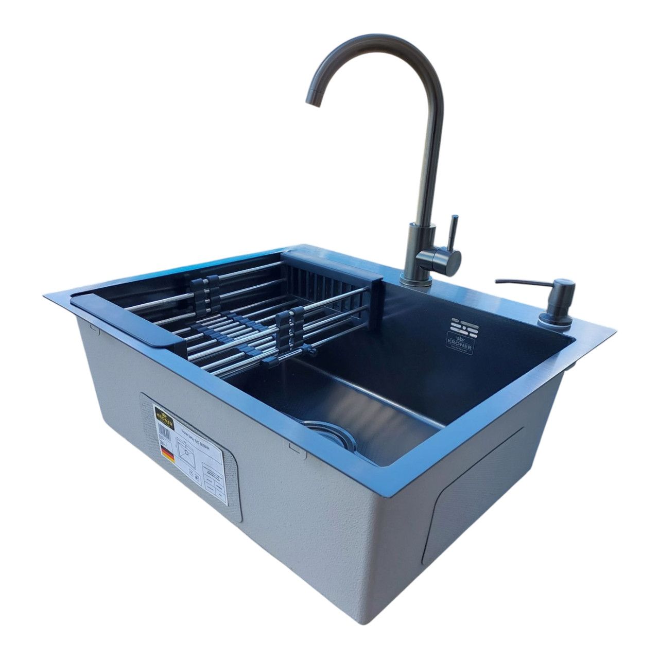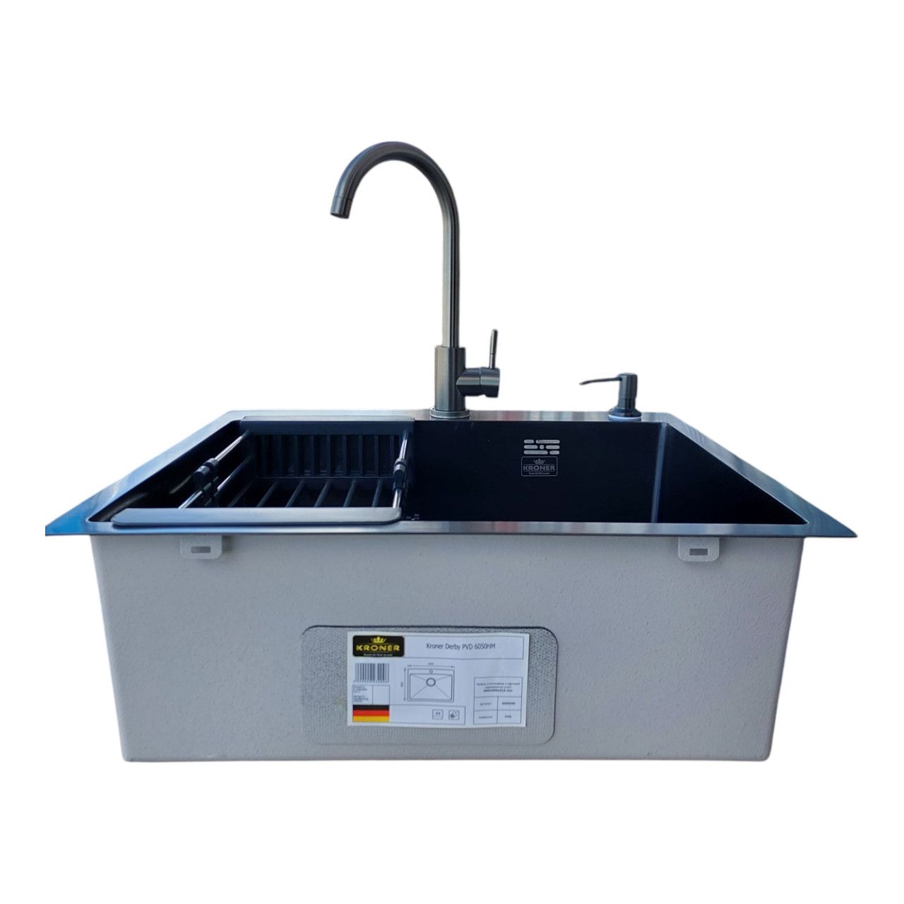 Набір мийка кухонна 6050 Nano Black + змішувач SUS 011 Graphite