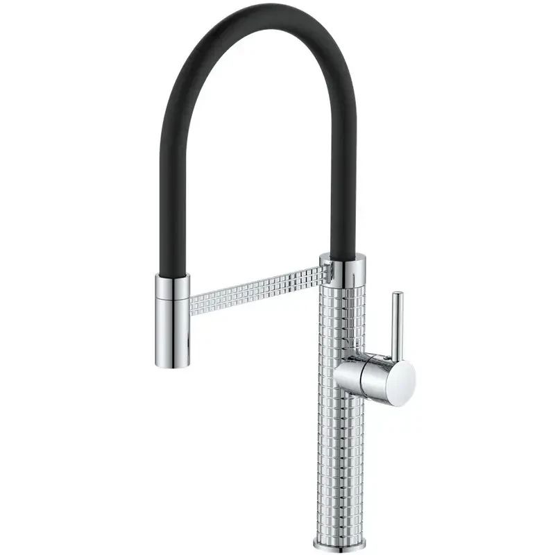 Змішувач для кухні з гнучким силіконовим зливом OLIWER 017 REFL.BLACK - стильний змішувач для кухні з сучасним дизайном. Він поєднує в собі хромовані та чорні елементи, що надає йому елегантного та сучасного вигляду.