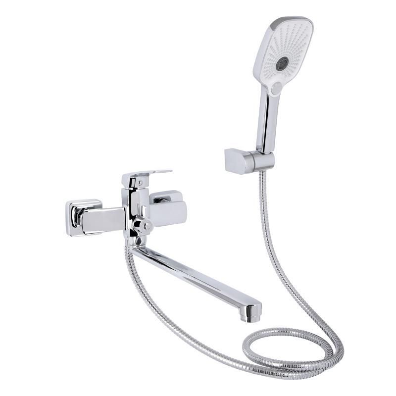Змішувач для ванни Qtap Jay з довгим поворотним виливом (з душовим гарнітуром) QTJAY2601CRW45552 В наявності