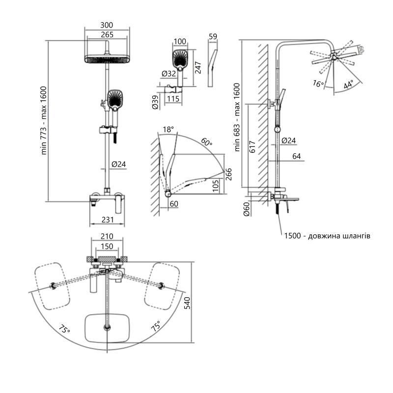 Душова система для душу Qtap Slavonice на два споживачі QTSLA110CRM45912 Chrome В наявності