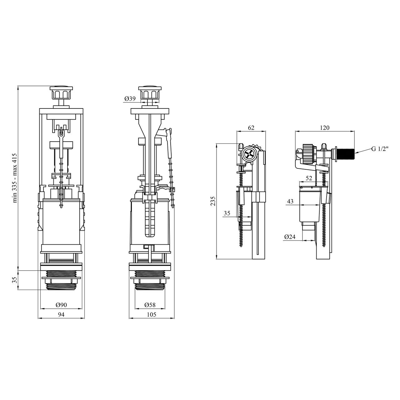 3. Регульована висота зливного механізму. Можна налаштувати в діапазоні від 335 до 415 мм, що дає змогу точно припасувати під бачок будь-якої глибини.