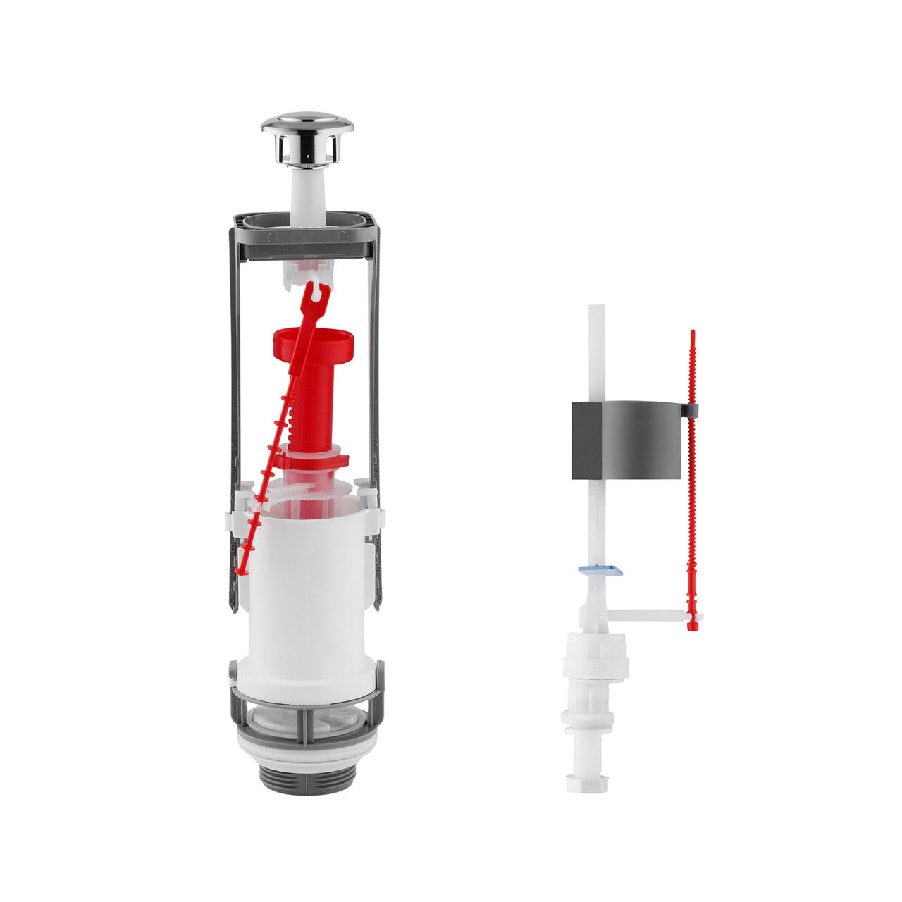 Комплект арматури NM — це надійне та функціональне рішення для обладнання зливного бачка унітаза. Він містить у собі заливний механізм із нижнім під'єднанням і однорівневий зливний клапан із кнопкою, що забезпечує стабільне подавання води та ефективне змивання.
