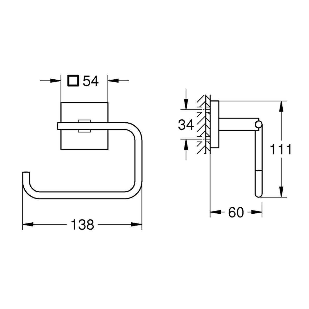 Легке встановлення: Тримач можна легко встановити з використанням шурупів, що входять до комплекту, і дюбелів. Також можливе використання клейових комплектів GROHE QuickGlue A1 41 127 000 для зручнішого встановлення.