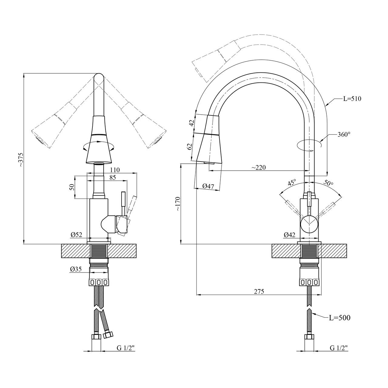 Корпус із неіржавкої сталі стійкий до вологи та пошкоджень, а гнучкий вилив забезпечує максимальний комфорт у використанні — ви легко спрямуєте потік води туди, де це потрібно.