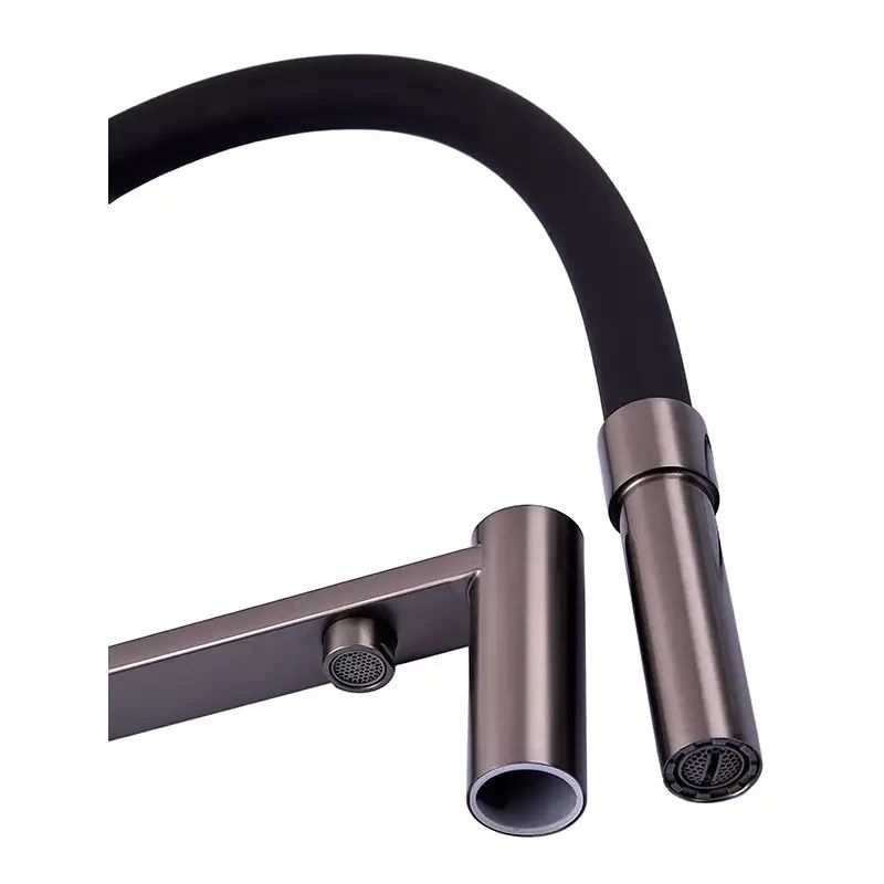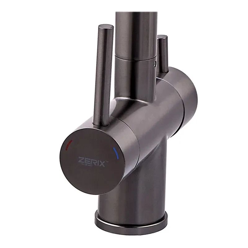 Змішувач для кухні з гнучким виливом на дві води Zx KIT-021 Graphite Black з нержавіючої сталі