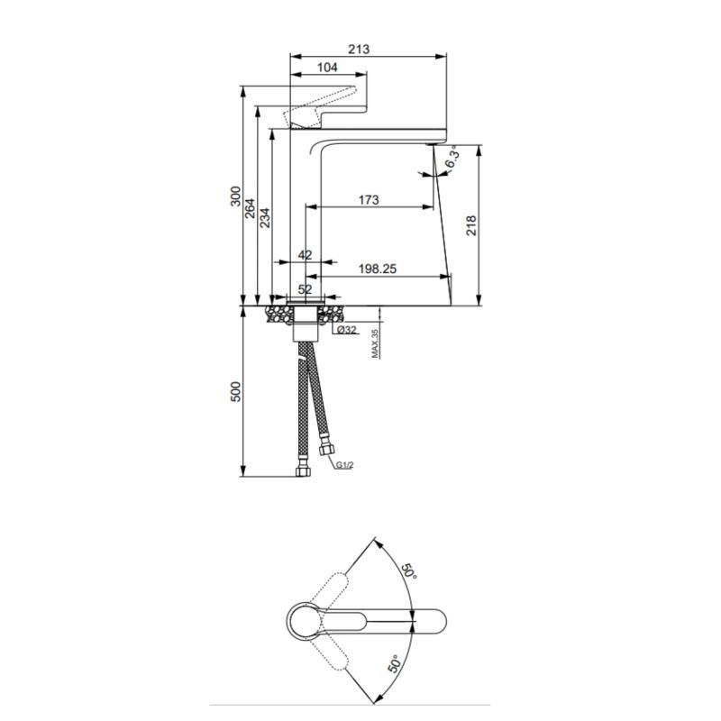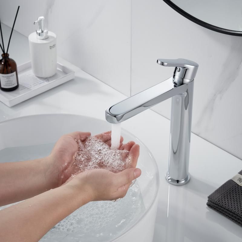 Змішувач для раковини Lidz Astra 001FH (арт. LDAST001FHCRM48090) — висока модель із плавними формами, призначена для встановлення з накладними умивальниками. Подовжений корпус і вилив забезпечують комфортне використання, а ергономічна ручка дає змогу точно регулювати температуру та напір води. Виготовлений із латуні та покритий зносостійким хромом, стійким до вологи та забруднень. До комплекту входять шланги під'єднання та монтажний набір.