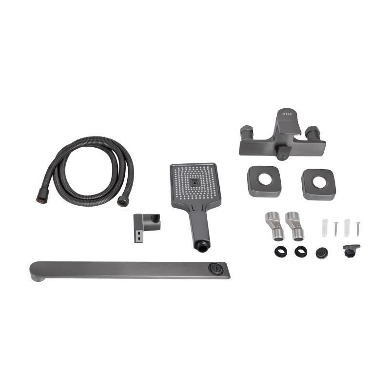 Змішувач для ванни Qtap Presto з довгим поворотним виливом (з душовим гарнітуром) QTPRE2601GRP45583 Graphite