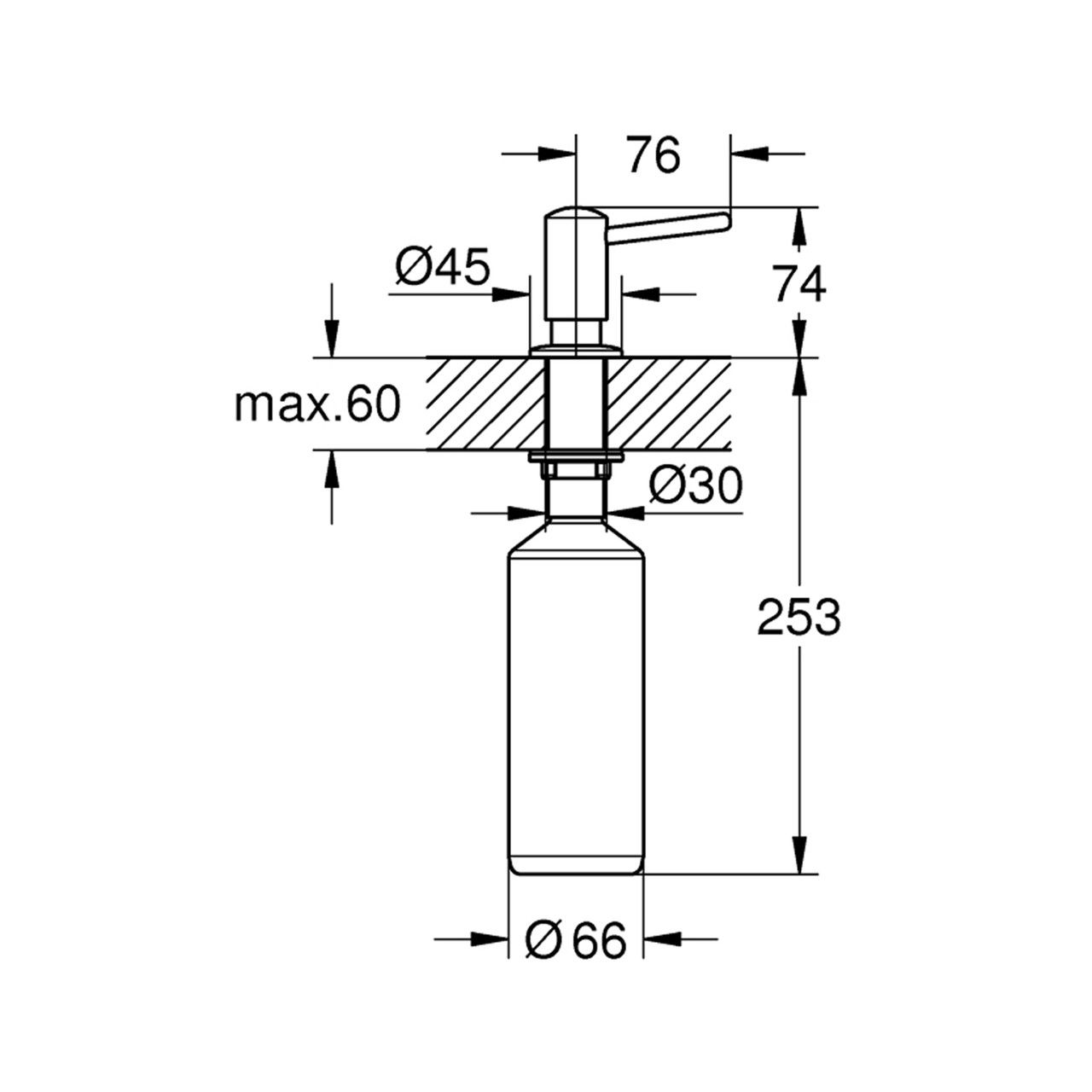 Флакон об'ємом 500 мл ховається під стільницею, економлячи місце навколо мийки та підвищуючи рівень гігієни — улюблене мило завжди під рукою. Зручне використання навіть брудними руками: натискати можна як рукою, так і ліктів.
