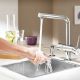 Дозатор монтується в стільницю, звільняючи місце навколо раковини та надаючи кухні акуратного та сучасного вигляду. Його глянсова хромована поверхня з покриттям GROHE Long-Life Shine® стійка до зношування та зберігає блиск на довгі роки.