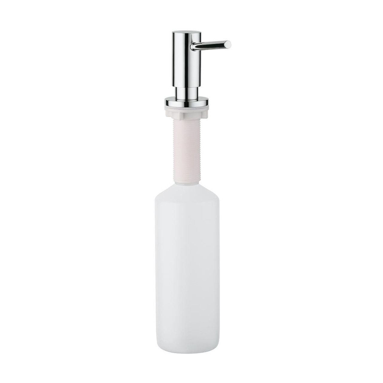 Дозатор монтується в стільницю, звільняючи місце навколо раковини та надаючи кухні акуратного та сучасного вигляду. Його глянсова хромована поверхня з покриттям GROHE Long-Life Shine® стійка до зношування та зберігає блиск на довгі роки.