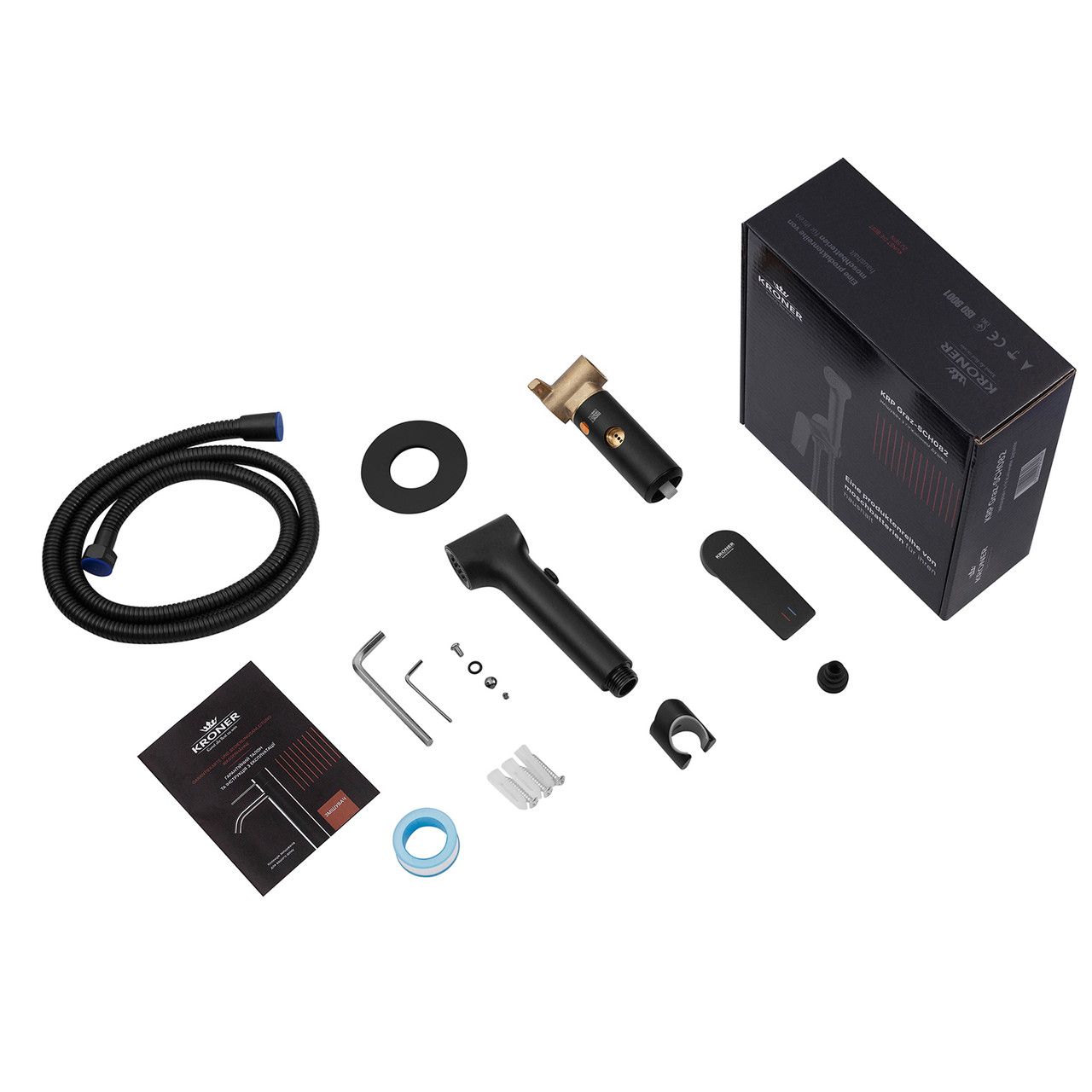 Kroner Graz — SCH082 — стильний набір для гігієнічного душу, створений для тих, хто цінує мінімалізм і зручність. Матове чорне покриття надає виразності, створюючи сучасний акцент у ванній кімнаті.