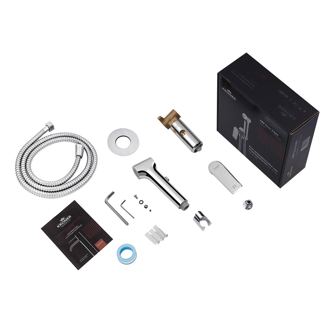 Kroner Graz — C082 — універсальний набір для гігієнічного душу, що поєднує функціональність і блискучий зовнішній вигляд. Глянсове хромоване покриття надає свіжості та візуально розширює простір ванної кімнати.
