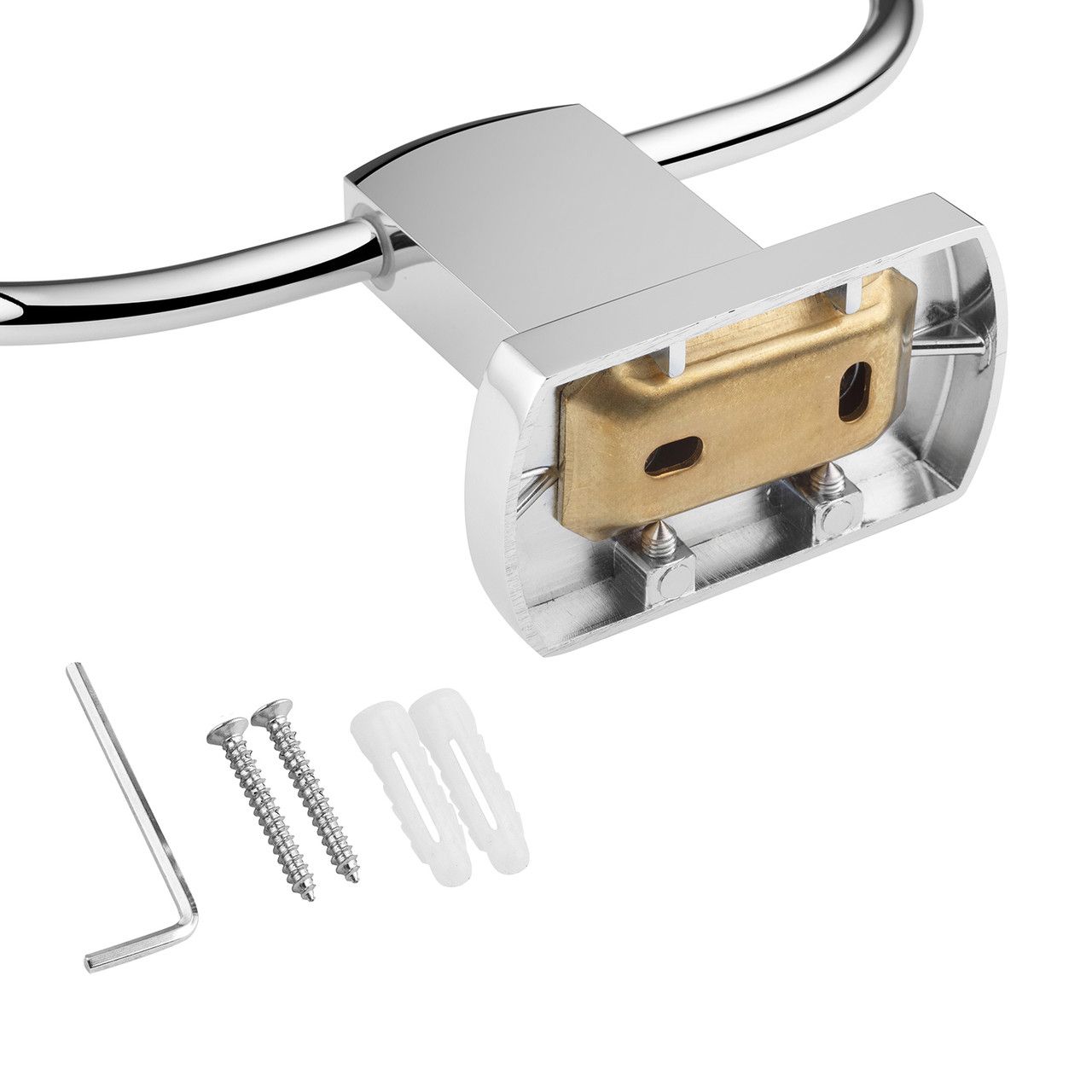 Тримач для рушників Kroner KRM Graz — C95606 — стильний і практичний аксесуар для вашої ванної кімнати. Кільцеподібна конструкція з цинку забезпечує зручне розташування рушників, а глянсова хромована поверхня надає виробу вишуканого блиску та захищає від корозії. Завдяки настінному монтажу тримач допомагає заощадити простір, зберігаючи ванну кімнату акуратною й організованою. Надійне кріплення на шурупах гарантує стабільність під час використання.