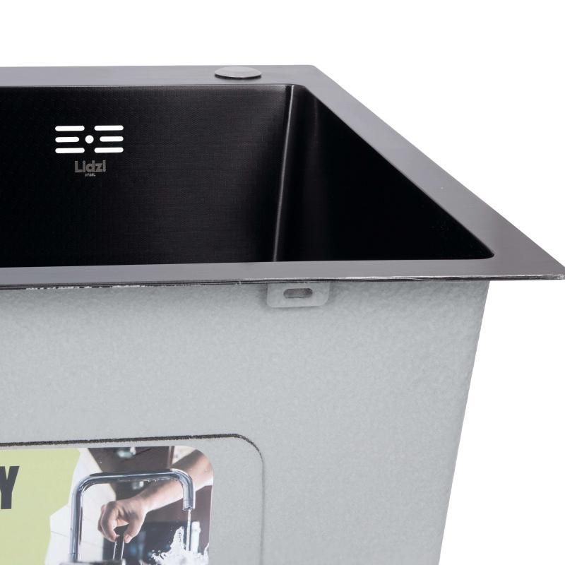 Мийка Lidz Handmade з поверхнею Decor Black PVD Honeycomb. Чорне покриття підкреслює преміальний стиль, а товщина сталі 2,5/0,5 мм забезпечує стійкість до пошкоджень і довгий термін експлуатації. Ефектна поверхня робить модель яскравим акцентом на кухні.