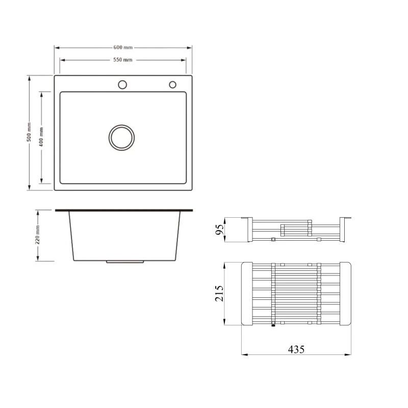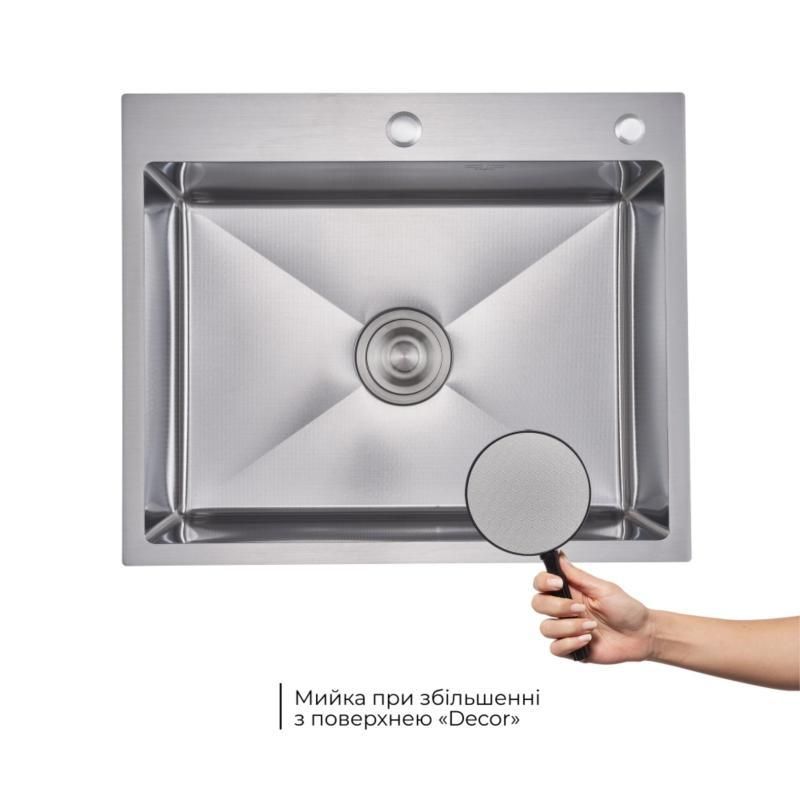 Комплект Lidz Handmade H6050H Мийка для кухні інтегрована Decor Honeycomb у комплекті з дозатором + Lidz K01G Кошик для