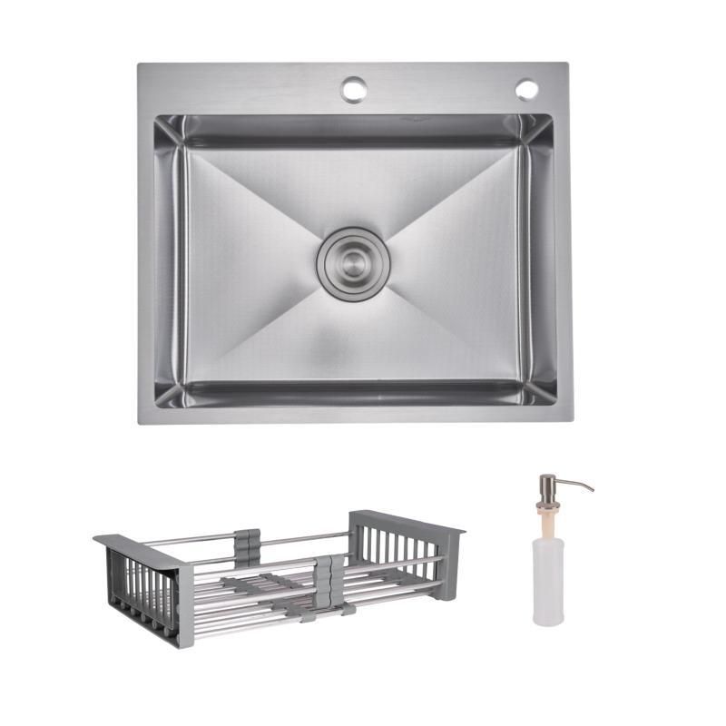 Велика вбудована мийка з неіржавкої сталі з декоративною поверхнею Honeycomb. У комплекті з дозатором і кошиком Lidz K01G — все необхідне для комфортного використання.