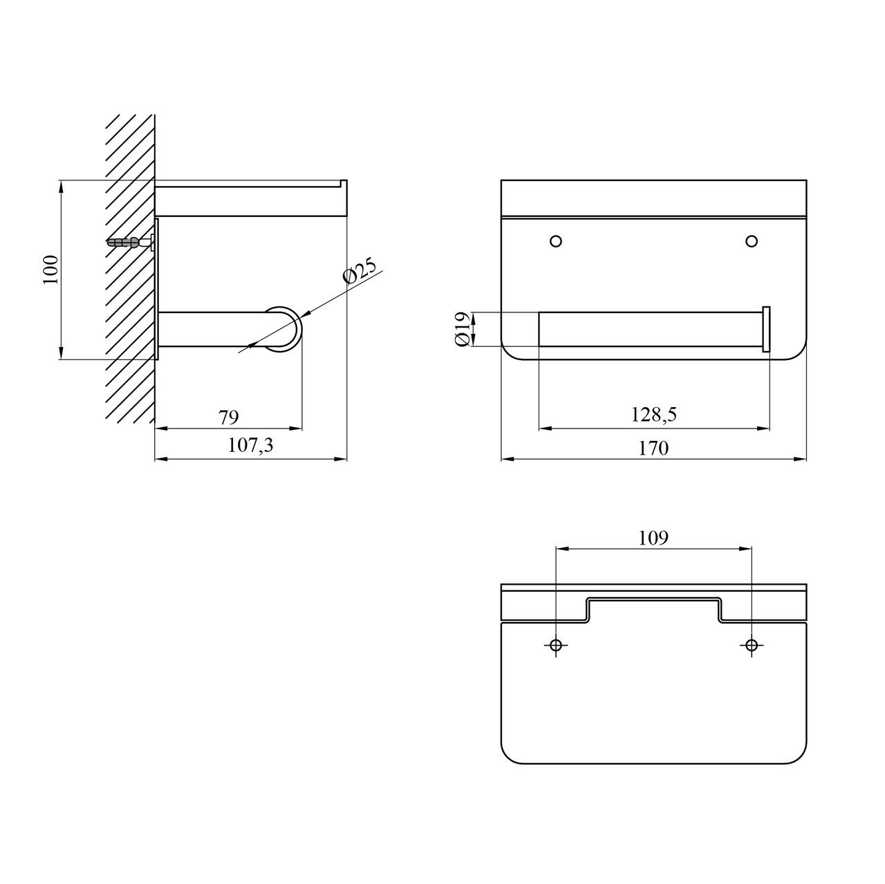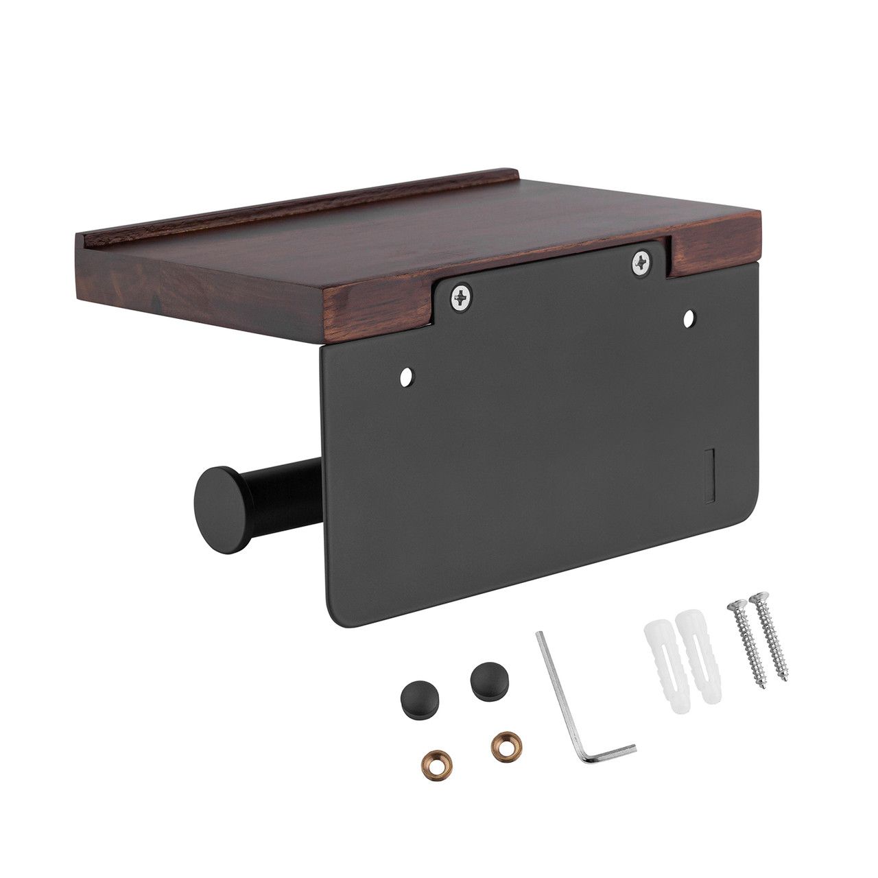 Поличка дає змогу зручно розміщувати дрібні предмети — телефон, освіжувач повітря або декор. Конструкція забезпечує легку заміну рулону паперу та надійне кріплення до стіни.