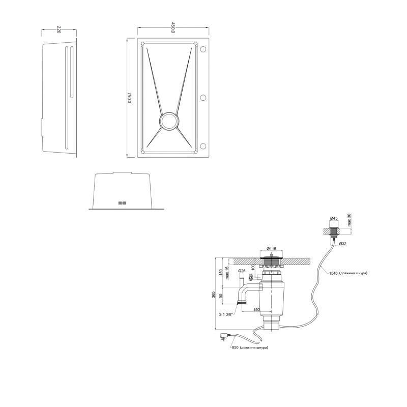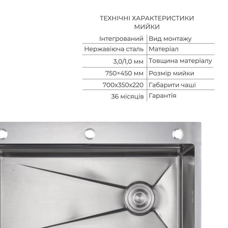 Комплект Lidz Handmade H7545 Мийка для кухні інтегрована Decor Honeycomb LDH7545DEC48372 + Lidz (BLA) Подрібнювач для