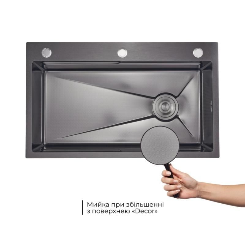 Комплект Lidz Handmade H7545B Мийка для кухні інтегрована Decor Black PVD Honeycomb LDH7545BDECPVD48373+Lidz (BLA)