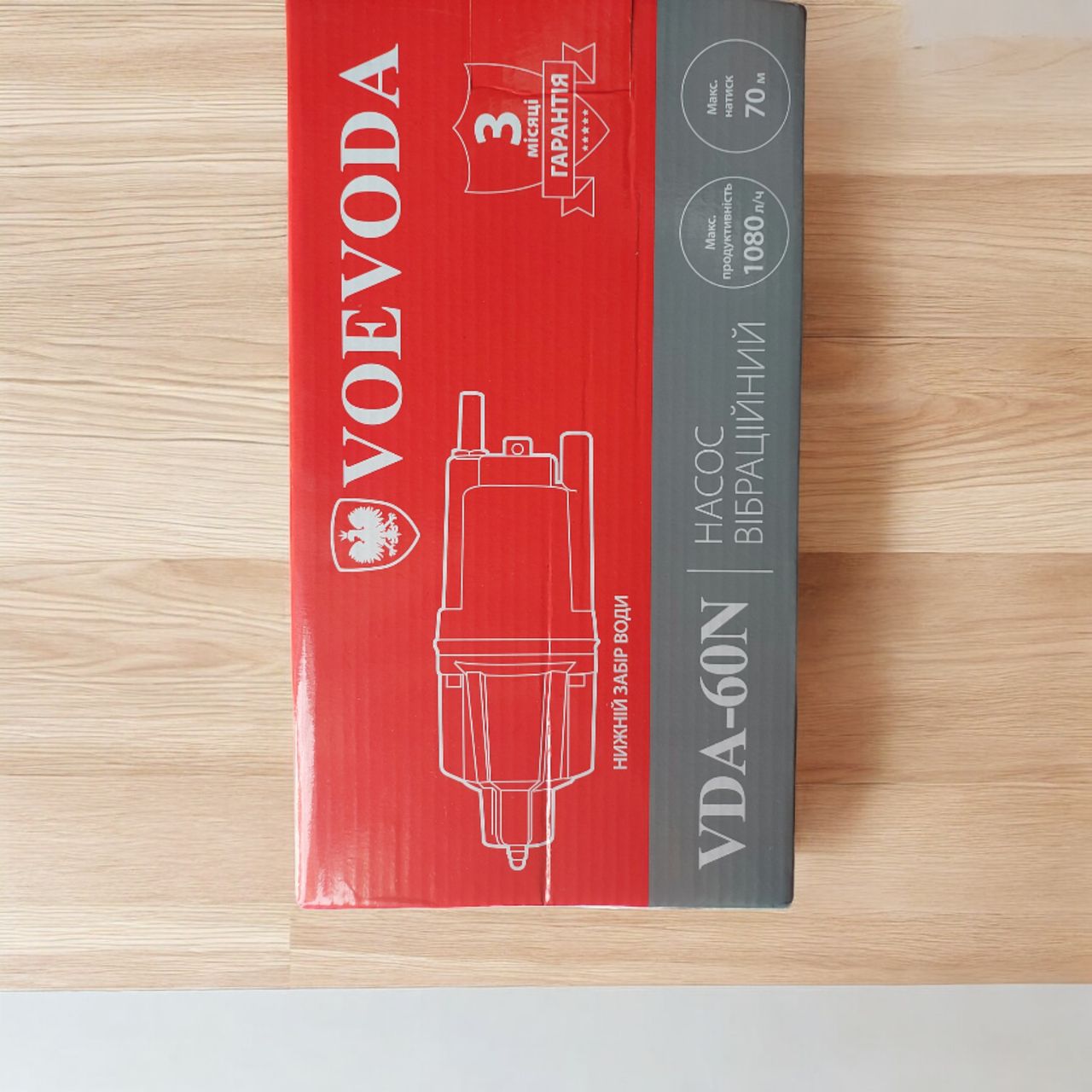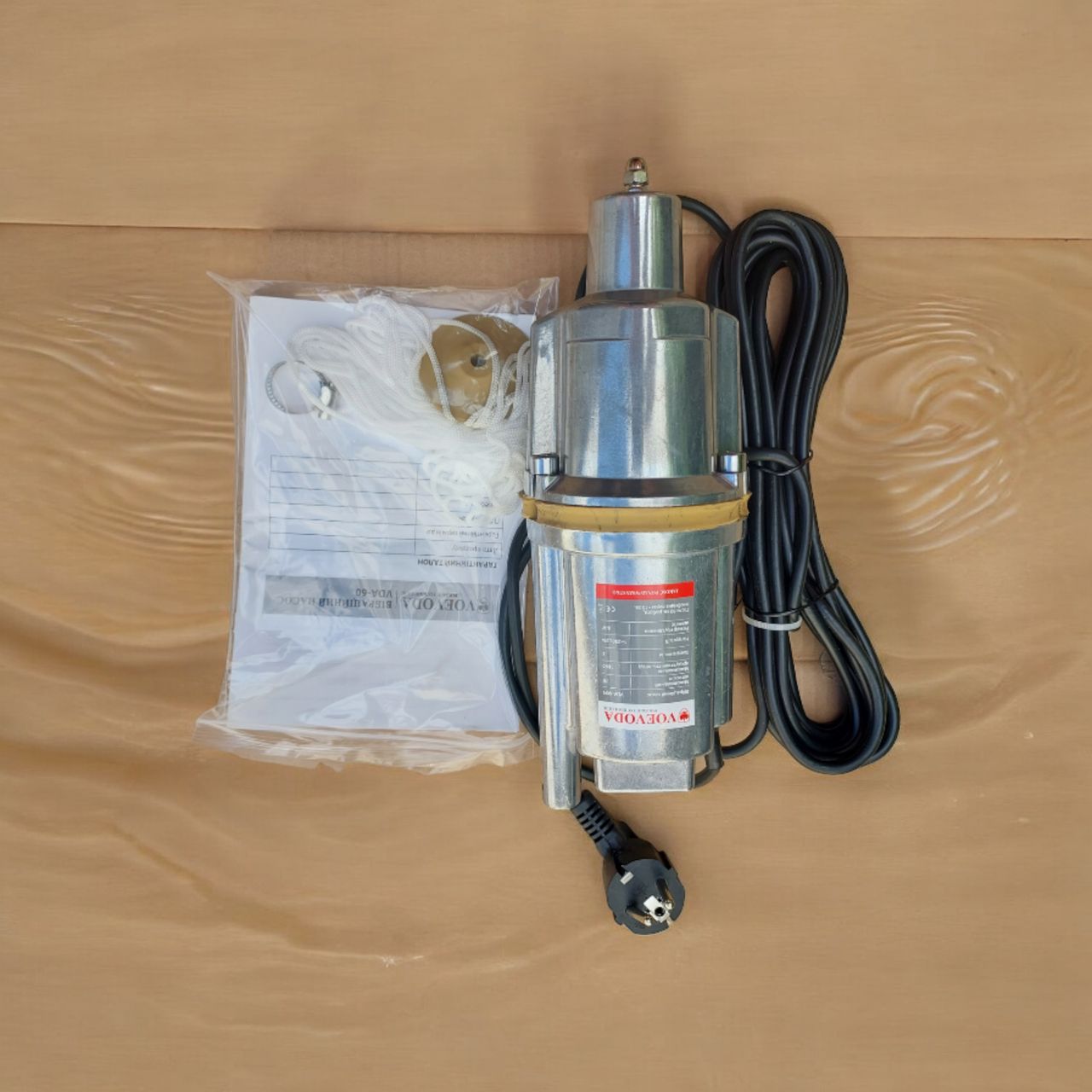 Насос вібраційний VOEVODA VDА 60, одноклапанний з нижнім забором води. Вібраційні насоси успішно застосовують для подачі води з природних водойм (таких, як озера, річки), цистерн, колодязів, свердловин при реалізації проектів автономного водопостачання. Потрібне насосне обладнання такого типу для відкачування води при затопленні цокольних поверхів, підвальних приміщень. Вібраційний насос призначений для виконання функції перекачування чистої води.