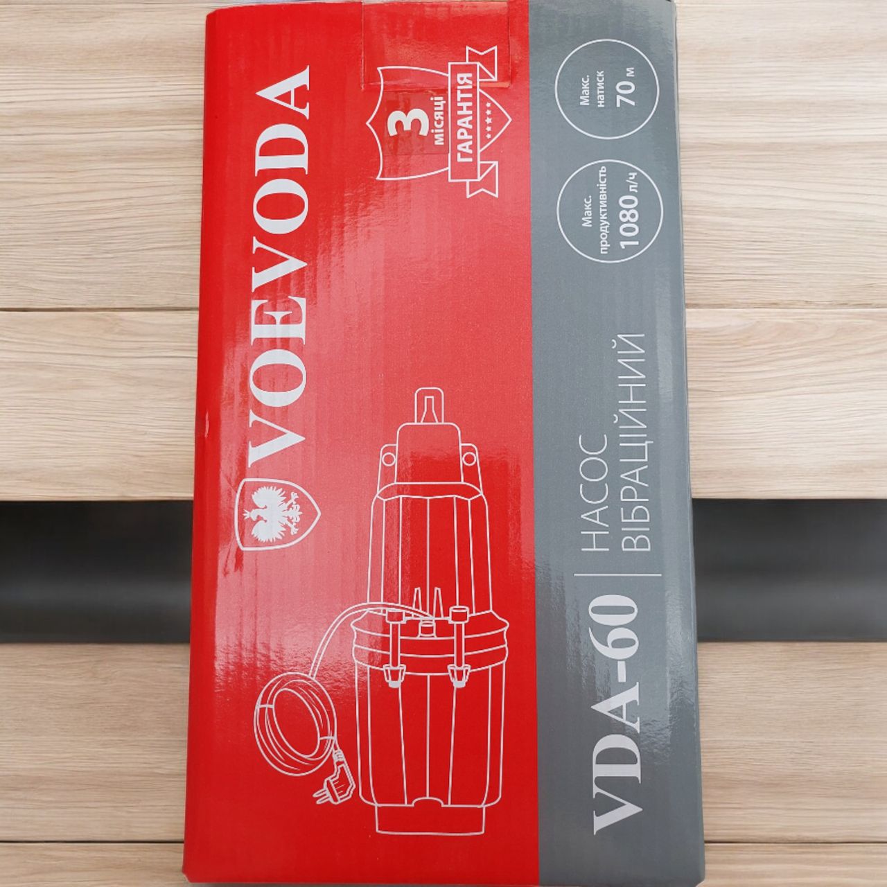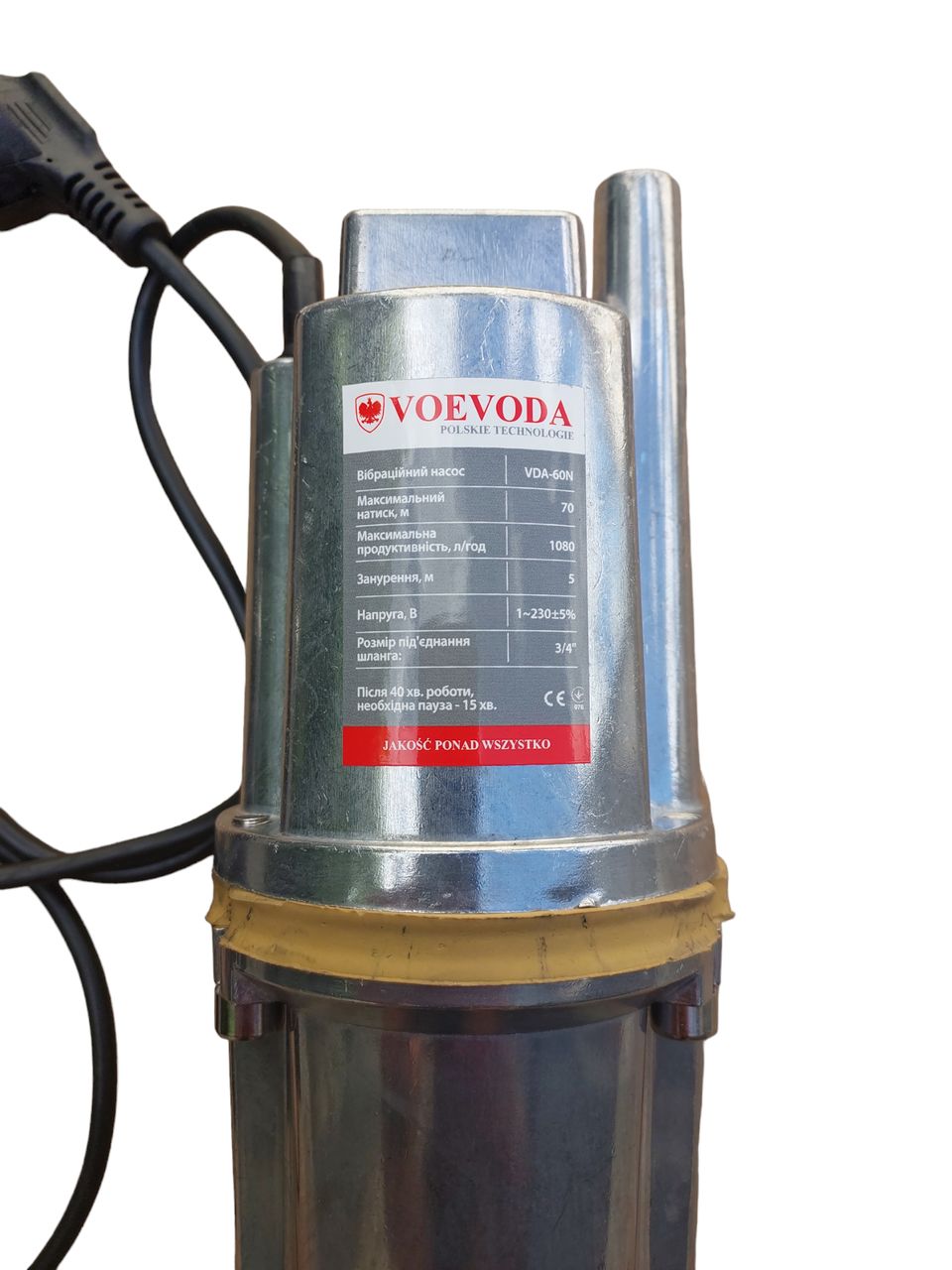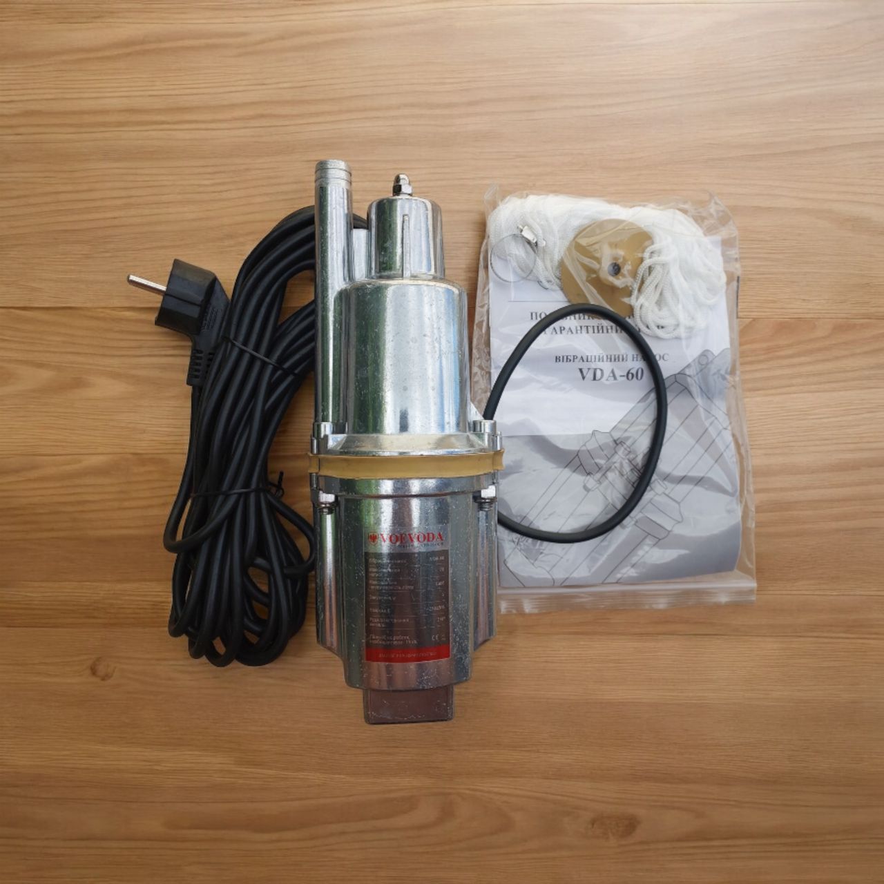 Насос вібраційний VOEVODA VD 60, одноклапанний з верхнім забором води. Вібраційні насоси успішно застосовують для подачі води з природних водойм (таких, як озера, річки), цистерн, колодязів, свердловин при реалізації проектів автономного водопостачання. Потрібне насосне обладнання такого типу для відкачування води при затопленні цокольних поверхів, підвальних приміщень. Вібраційний насос призначений для виконання функції перекачування чистої води.