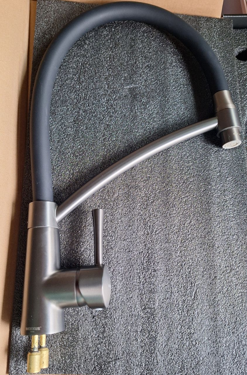 Mixxus Premium ROSSI 017 GRAPHITE – це кухонний змішувач, виготовлений з міцної латуні за німецькою технологією. Гнучкий високий вилив у чорному кольорі фіксується латунним тримачем, забезпечуючи зручність у використанні. Завдяки рухливості виливу ви легко досягнете кожної точки раковини без зайвих зусиль.