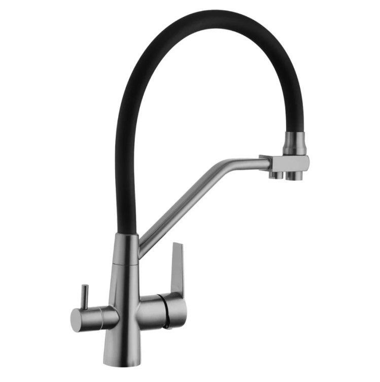 Змішувач для кухні латунний з гнучким виливом та під фільтр MAGNET 021 SS COLOR REFL.GREY