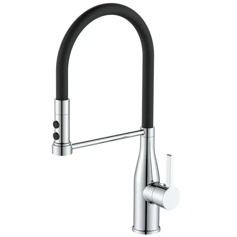Кухонний змішувач SUMMER 017 REFL.BLACK – це поєднання хромованого покриття та гнучкого виливу, що робить його не лише стильним, але й максимально зручним у використанні. Гнучкий силіконовий вилив дозволяє легко змінювати напрямок струменя, забезпечуючи комфорт при миття посуду та наповненні великих ємностей.