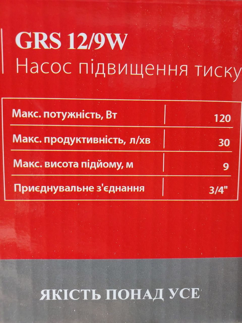 Насос для підвищення тиску VOEVODA GRS 12/9W (кабель)