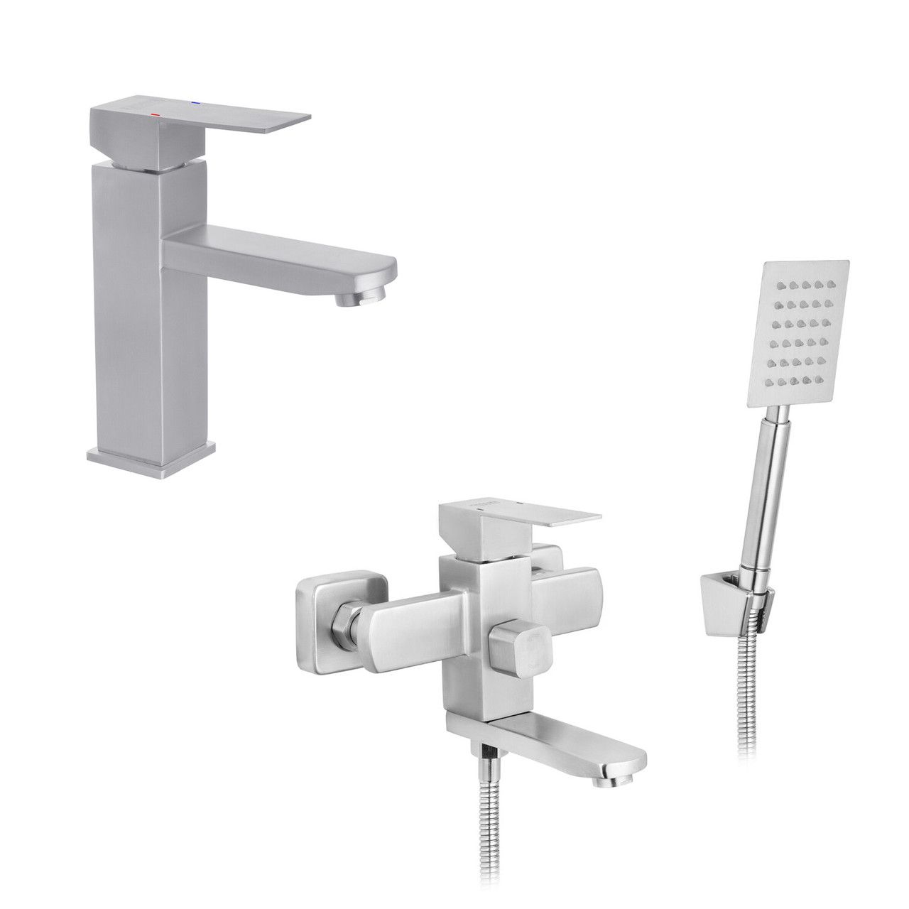 Комплект змішувачів Kroner Edelstahl Kubus — SCH060 та змішувач Edelstahl Kubus — SCH010 + штанга для душу В наявності