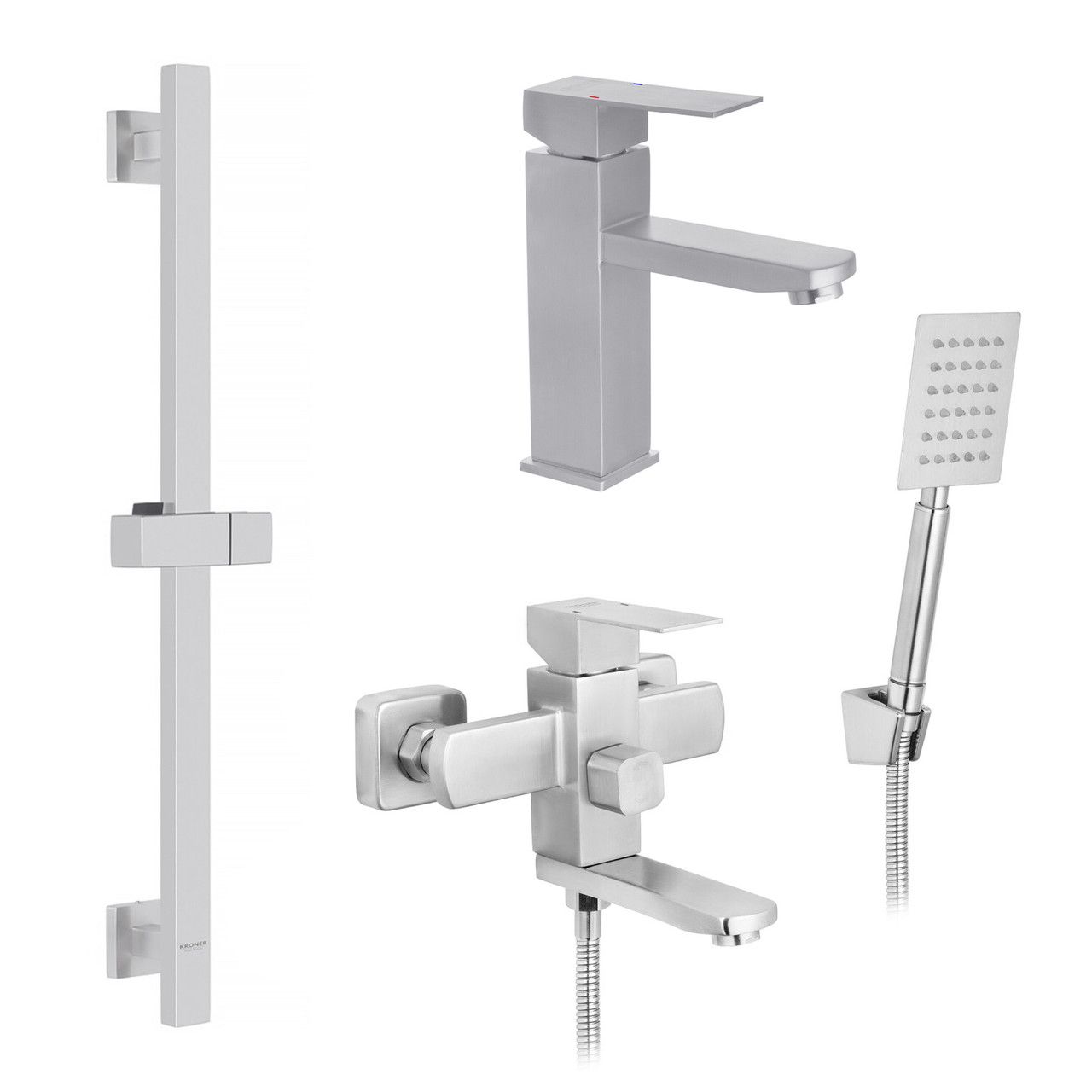 Комплект змішувачів Kroner Edelstahl Kubus — SCH060 та змішувач Edelstahl Kubus — SCH010 + штанга для душу В наявності