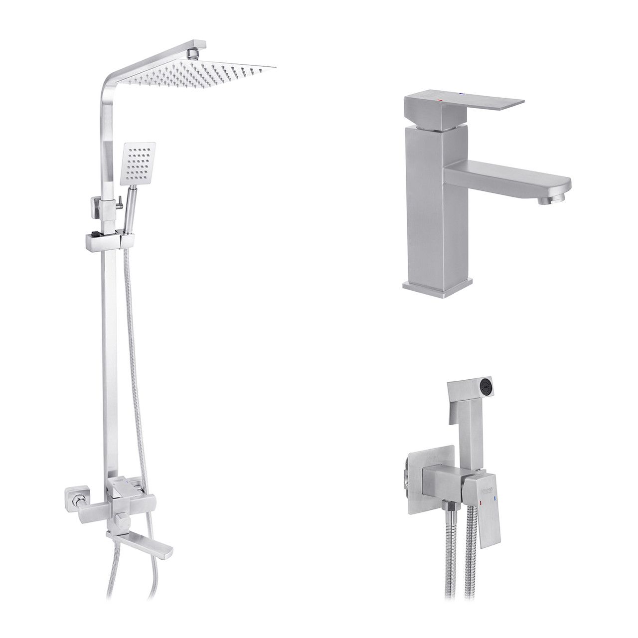 Набір змішувачів Kroner Edelstahl Kubus — SCH060 + змішувач Edelstahl Kubus — SCH010 + штанга для душу В наявності