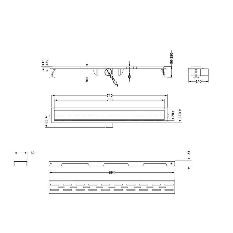 Комплект Qtap Taurus FD700 (BLA) Лінійний трап із неіржавкої сталі із сухим закривом 700 мм