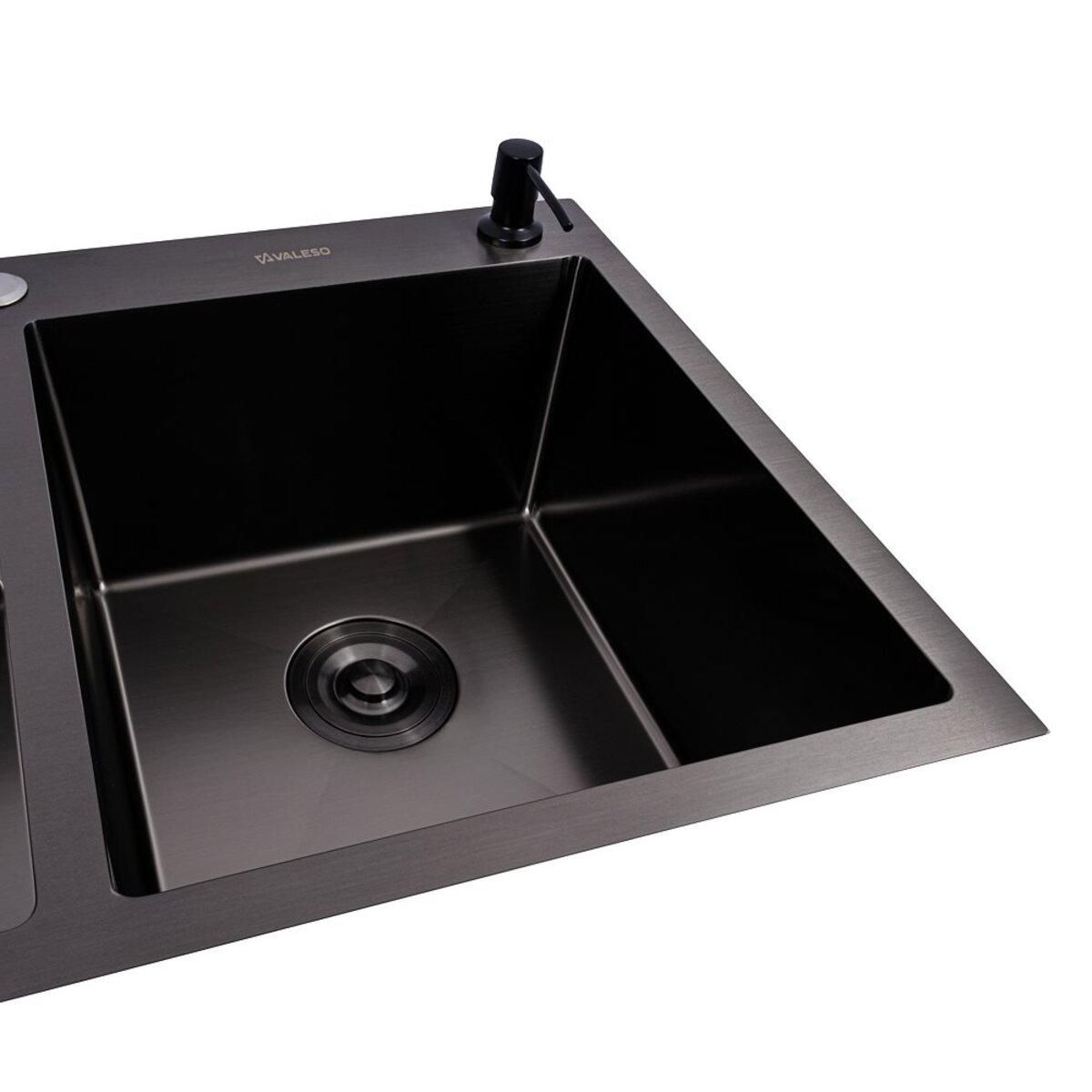 Мойка на две чаши PVD черная Valeso Handmade (3.0/0.8) 78*48