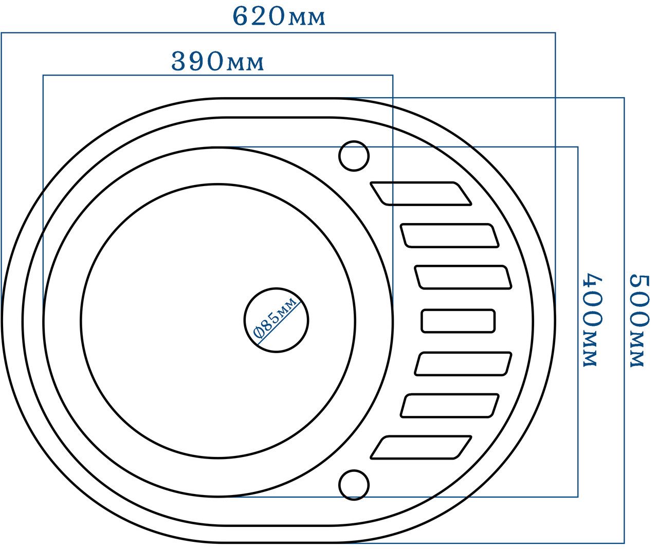 Габарити мийки (мм): 620х500х210