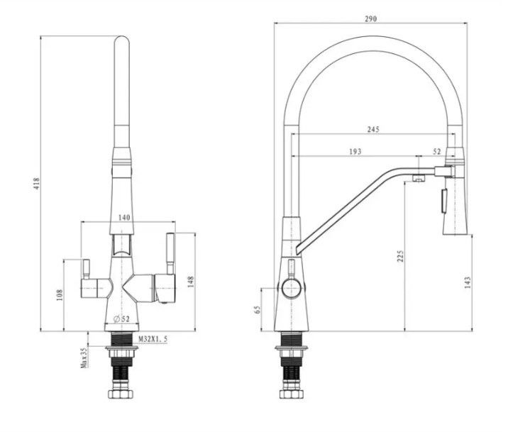 ✔ Подвійне керування: окремі важелі для подачі водопровідної води та фільтрованої води.