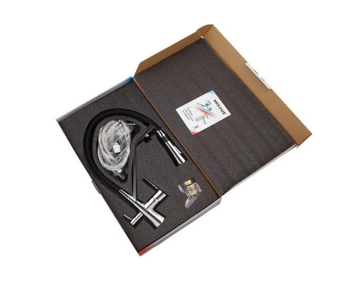 ✔ Гнучкий вилив: чорного кольору, з можливістю фіксації для зручності експлуатації.