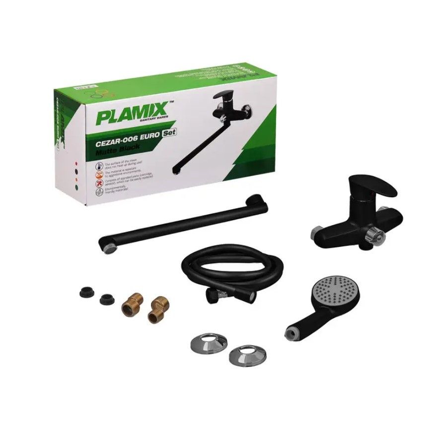 Змішувач для ванни з термопластику Plamx CEZAR-006 EURO SET Matte black зі шлангом та лійкою