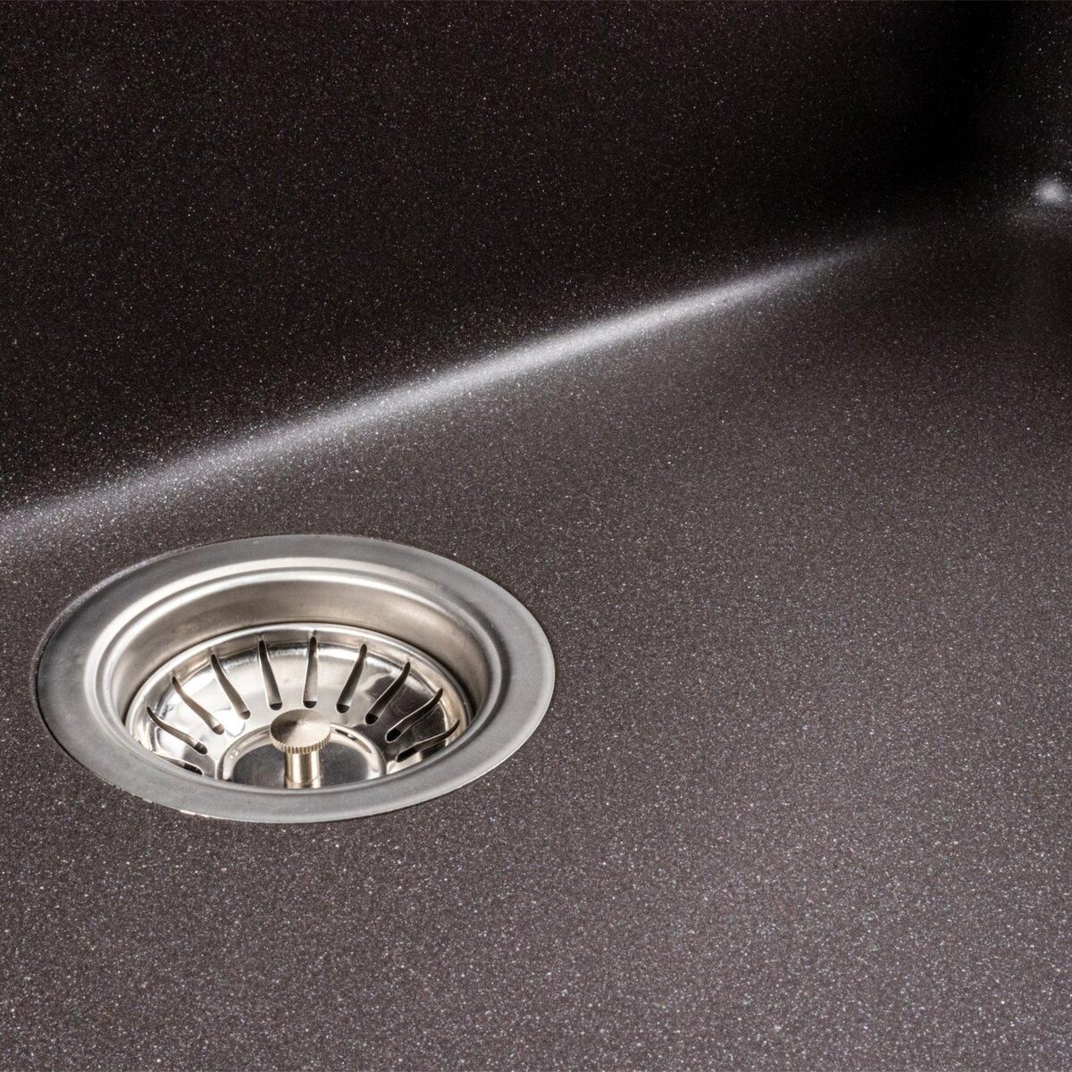 Ця мийка виготовлена на 80% з граніту та на 20% з високоміцної акрилової смоли. Таке поєднання матеріалів робить її не тільки стійкою та довговічною, але й дуже простою у догляді. Вона також має великий запас міцності, що гарантує її тривалу експлуатацію.