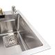 Накладна мийка має стильний хромовий колір, а змішувач з гнучким виливом та дворівневим ступінчастим дизайном може бути переміщений праворуч або ліворуч всередині миття, що дозволяє економити воду, час та зусилля. Глибока і простора раковина дозволяє розмістити каструлі без бризок і легко впоратися з миттям столових приладів.