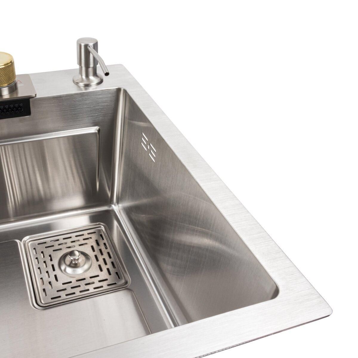 Кухонна мийка 75*45B PVD сатин Platinum Handmade "ВОДОСПАД" - неймовірно популярна кухонна мийка, справжнє відкриття цього року! Її багатофункціональність і комплектація зі змішувачем роблять її незамінним аксесуаром для будь-якої кухні.